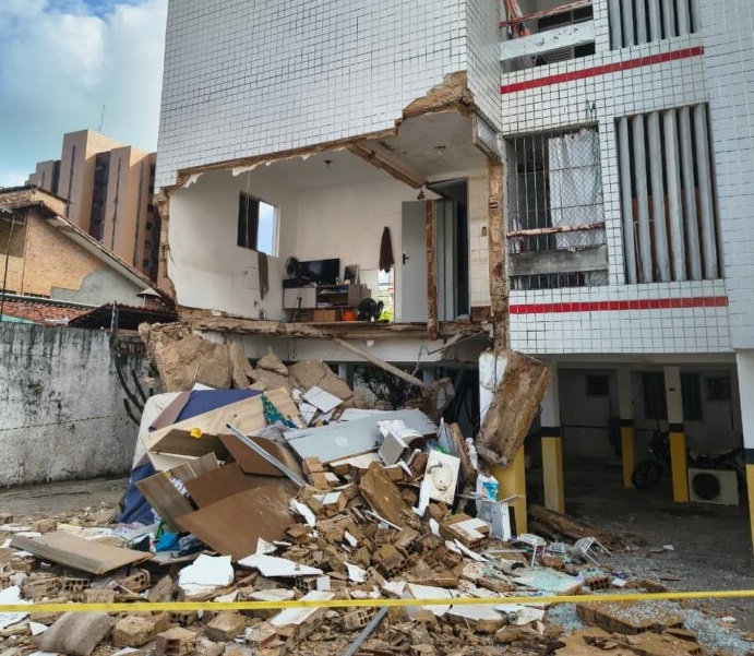 Um apartamento de um prédio no bairro do Bessa, em João Pessoa, desabou na manhã desta quinta-feira (1º) e levou à interdição imediata de todo o edifício. Diante do risco iminente de novos desabamentos, moradores foram retirados às pressas e deixaram o local apenas com a roupa do corpo.